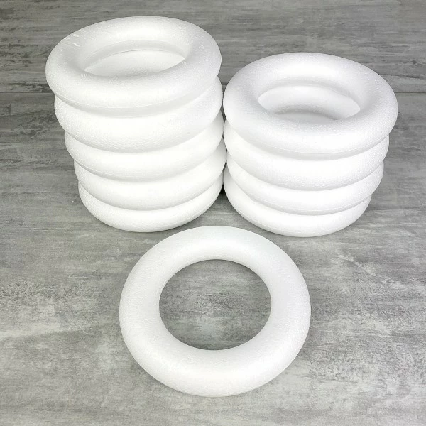 Description de Lot de 10 Anneaux / Couronnes polystyrène plein diam. 20 cm, Bouées haute densité, déco de l’avent