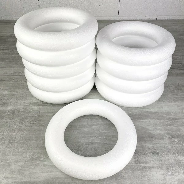 Description de Lot de 10 Anneaux / Couronnes polystyrène plein diam. 25 cm, Bouées haute densité, déco de l’avent