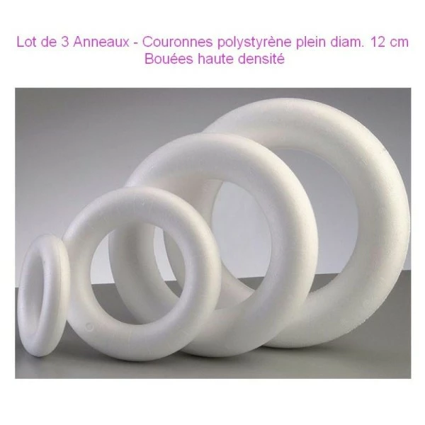 Description de Lot de 3 Anneaux – Couronnes polystyrène plein diam. 12 cm, Bouées haute densité