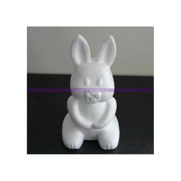 Description de Lapin en polystyrène, Hauteur 24 cm, Assis sur les pattes arrières