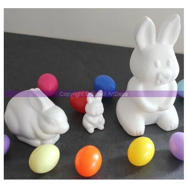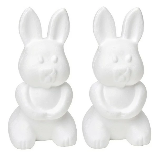 Description de Lot de 2 Lapins en polystyrène, Hauteur 24 cm, Assis sur les pattes arrières