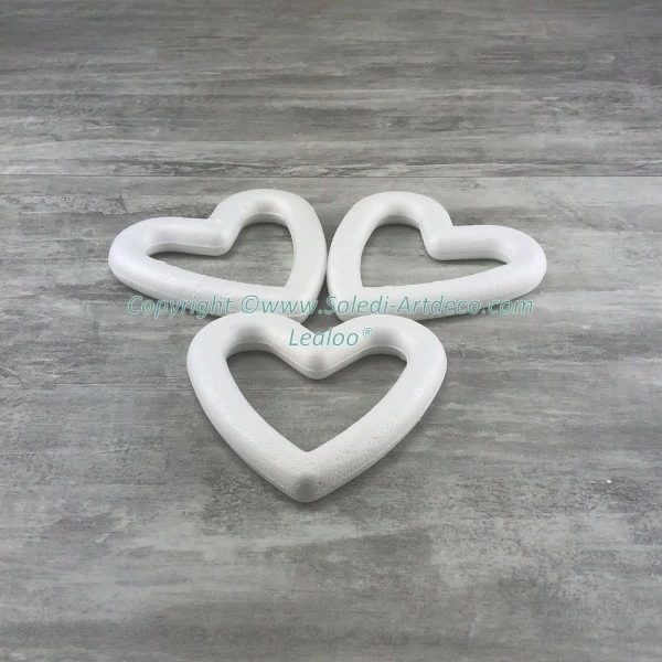 Lot de 3 couronnes forme Coeur polystyrène plein 14 cm, Cadre en Styropor
