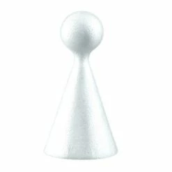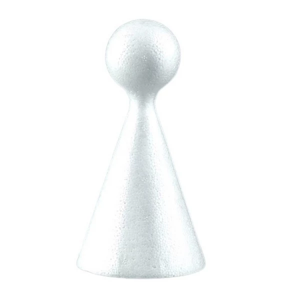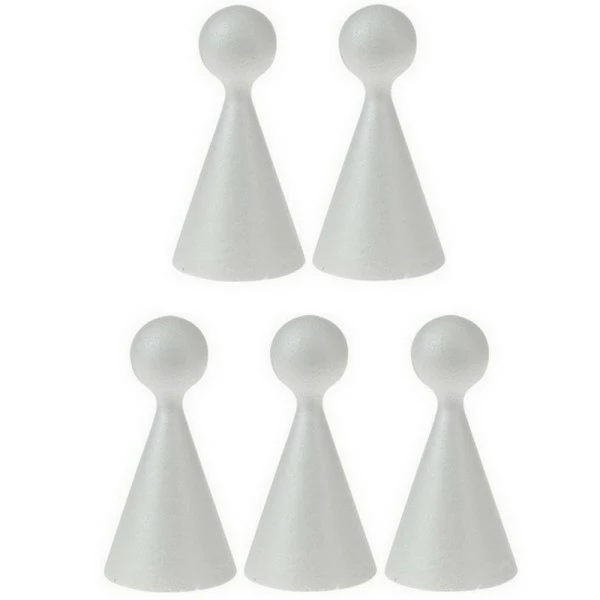 Description de Lot de 5 Cônes polystyrène, hauteur 15 cm, Ø 7.5cm, avec une boule au sommet, pour poupée