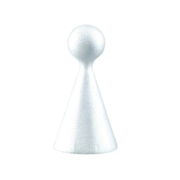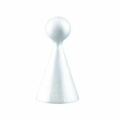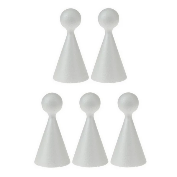 Description de Lot de 5 petits Cônes polystyrène, haut. 10 cm, Ø 4.5cm, avec une boule au sommet, pour poupée