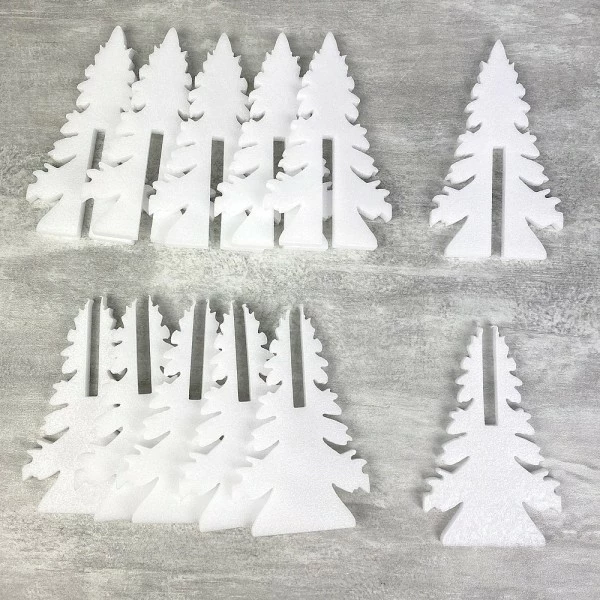 Description de Lot de 6 sapins en polystyrène, hauteur 10 cm, arbre de noël à assembler 2 parties