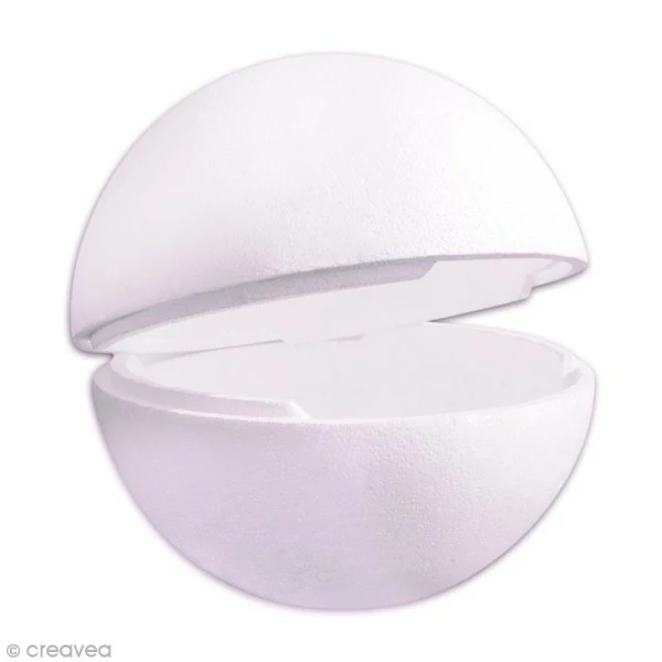 Cette boule en polystyrène blanche de 20 cm de diamètre est composée de deux demi-sphères assemblables. Ces deux demi-sphères creuses pourront facilement semboîter pour former une parfaite boule en styropor.