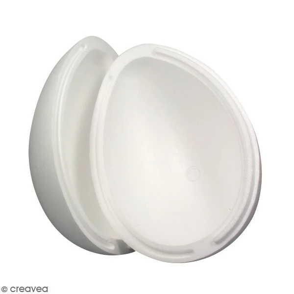 Cet Oeuf en polystyrène blanc de 20 cm de hauteur est composé de deux moitiés à assembler. Ces deux demi-oeufs creux pourront facilement s’emboîter pour former un superbe oeuf en styropor.