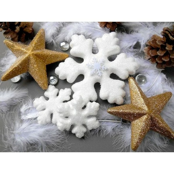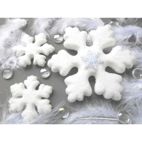 Description de Lot de 5 Flocons de neige en polystyrène, Diamètre 7 cm, décoration de Noël