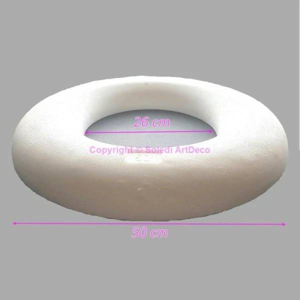 Description de Demi Anneau en Polystyrène de Diamètre 50cm, Couronne à base plate, 6cm de haut