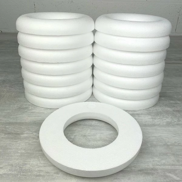 Description de Lot de 15 Demi Anneaux de 20 cm en Polystyrène, Couronne à dos plat, haute densité