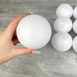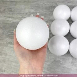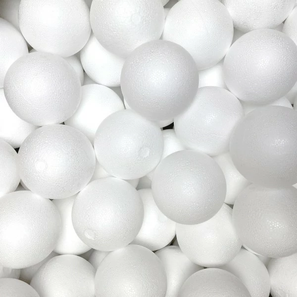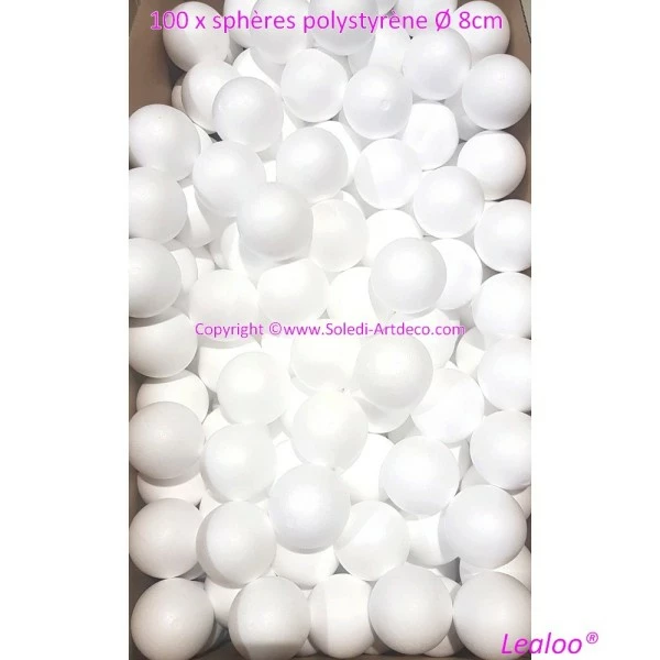 Description de Gros Lot 100 boules pleines Diam. 8 cm en polystyrène, Sphères Styropor blanc densité pro