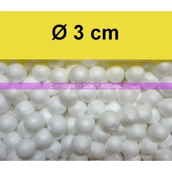 Description de Gros lot 200 petites boules Ø 3cm polystyrène, Sphères Styropor blanc diam 30mm, densité pro