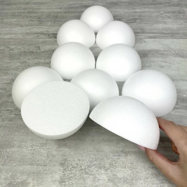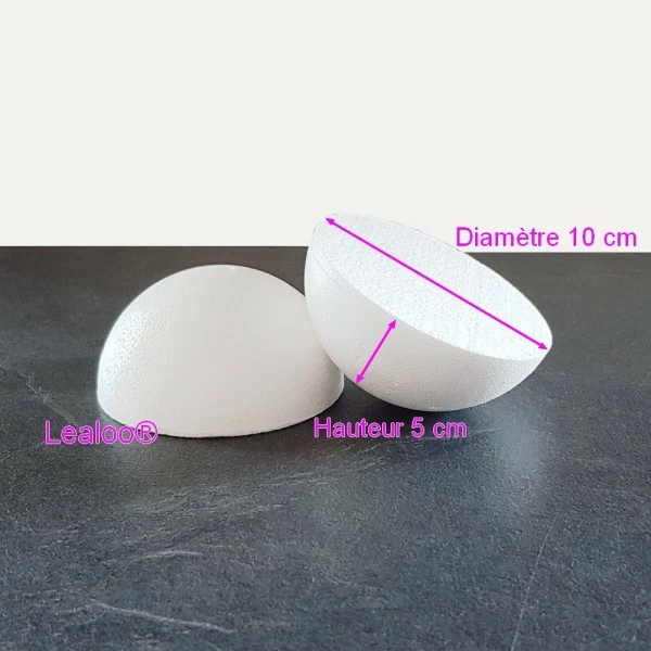 Description de Lot de 10 Demi-Sphères de 10 cm de diamètre, Dômes pleins en polystyrène de 5cm de haut