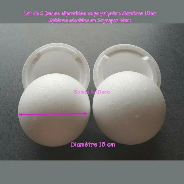 Description de Lot de 2 Boules séparables en polystyrène diamètre 15cm, Sphères sécables en Styropor blanc