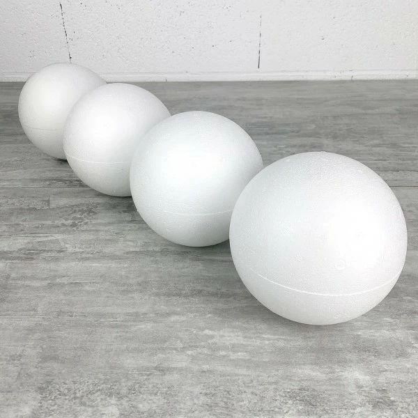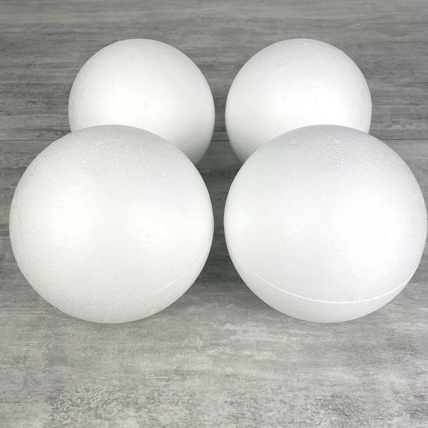 Description de Lot de 4 boules pleines en polystyrène diamètre 15 cm, Styropor blanc densité professionnelle