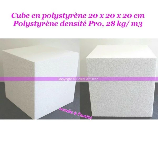 Description de Cube en polystyrène 20 x 20 x 20 cm, Styro densité Pro, 28 kg/ m3