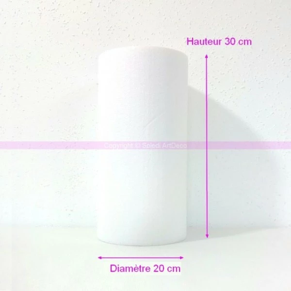 Description de Cylindre en polystyrène blanc Haut. 30cm x Diam. 20cm, Présentoir Styro densité
