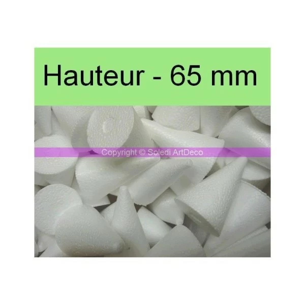 Description de Lot de 20 petits cônes en polystyrène, haut 6,5 cm, densité supérieure