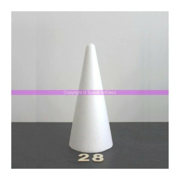 Description de Lot de 5 cônes en polystyrène de 28 cm de haut, diamètre de base 12 cm, densit&e