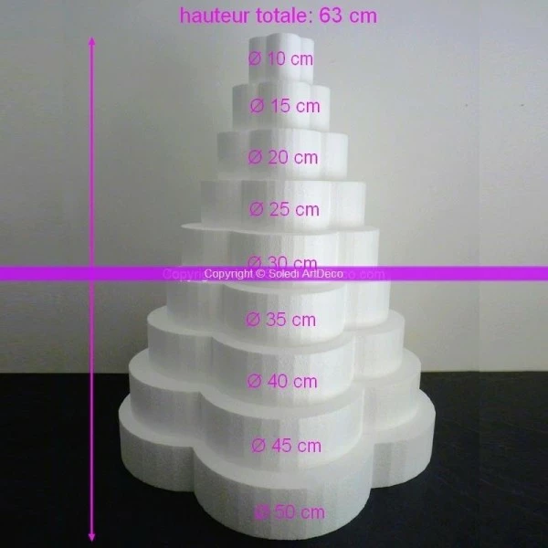 Description de Maxi Pièce montée Fleur en polystyrène plein, Hauteur 63 cm, Support 9 é