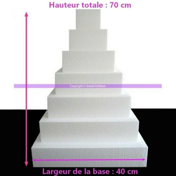 Description de Pièce montée Carré XL Polystyrène Pro, 70 cm de haut, 7 étages, B