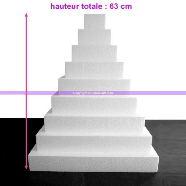 Description de Pièce montée carrée Polystyrène Densité Pro, 9 Etages, Haut 63 cm