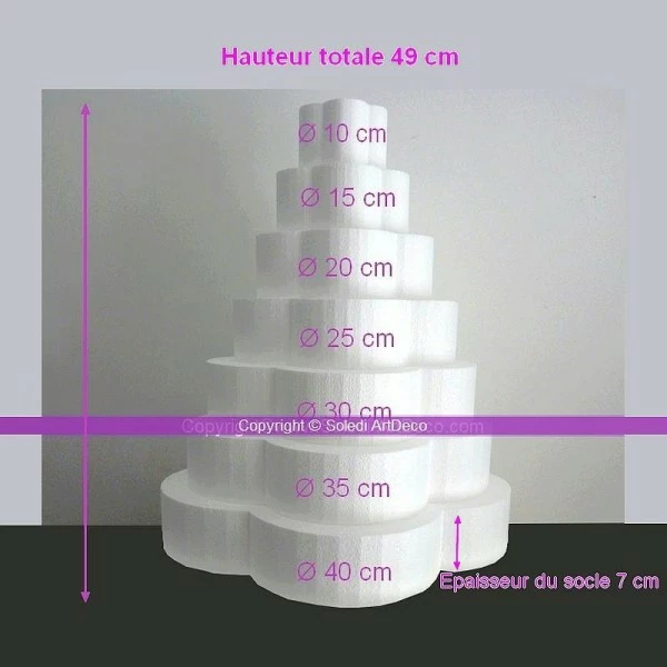 Description de Pièce montée Fleur en polystyrène plein, Hauteur 49 cm, Support 7 étages