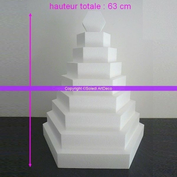 Description de Pièce montée Hexagonal en polystyrène, 63 cm, 9 étages de7cm chacun, Sty