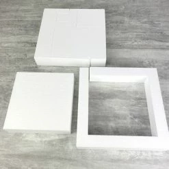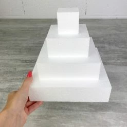 Description de Petite pièce montée carré, Haut. 20 cm en polystyrène, Base Ø 20cm à 5cm, 4 disques de 5cm de Haut,