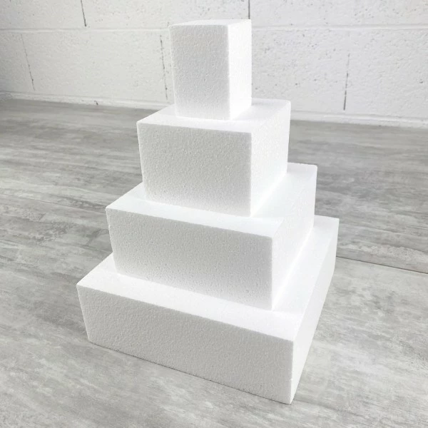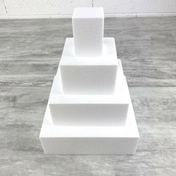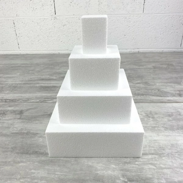 Description de Petite Pièce montée carrée Polystyrène Pro, 4 Etages, Haut 28 cm, Base 20 cm