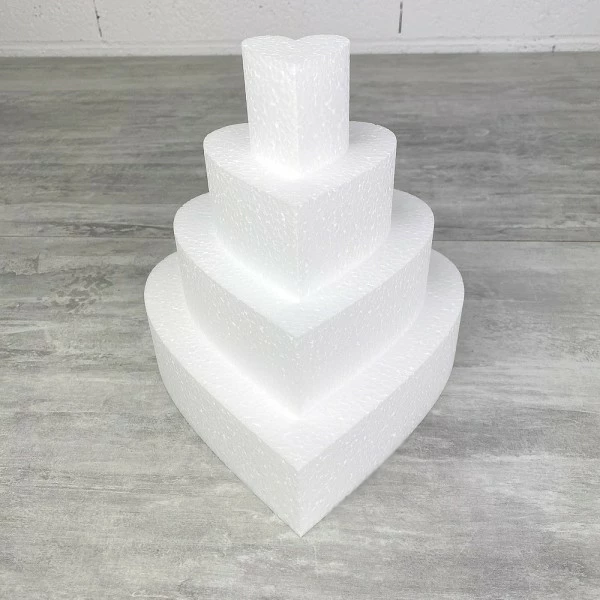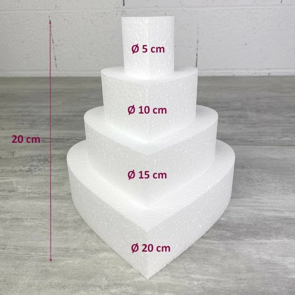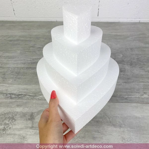 Description de Petite pièce montée coeur, Haut. 20 cm en polystyrène, Base Ø 20cm à 5cm, 4 disques de 5cm de Haut,