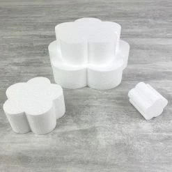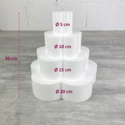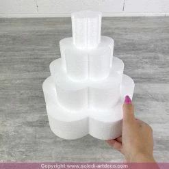 Description de Petite pièce montée fleur, Haut. 20 cm en polystyrène, Base Ø 20cm à 5cm, 4 disques de 5cm de Haut,
