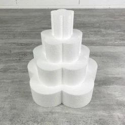 Description de Petite pièce montée fleur, Haut. 20 cm en polystyrène, Base Ø 20cm à 5cm, 4 disques de 5cm de Haut,