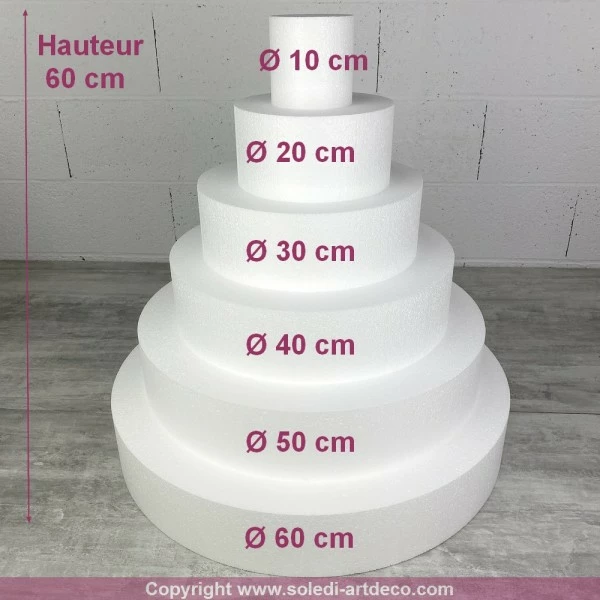 Description de Pièce montée en Polystyrène, Base diam. 60 cm, 6 étages, Haut. totale 60 cm, Wedding Cake haute dens