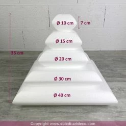 Description de Pièce montée en Polystyrène Coussin, Base 40 cm, 5 étages, Haut. 35 cm, Wedding Cake haute densité
