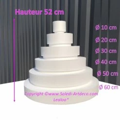 Description de Pièce montée Wedding Cake, Hauteur 52 cm, Base Ø 60cm à 10cm, 6 étages en Polystyrène
