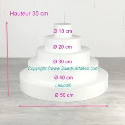 Description de Pièce montée XL en polystyrène haute densité, hauteur 35 cm, base 50 cm, 5 étages