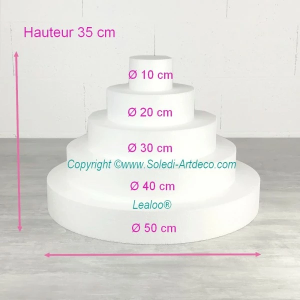 Réalisez une belle pièce montée recouverte de macarons, de sucreries … avec ces 5 disques de polystyrène d’une épaisseur de 7 cm chacun.