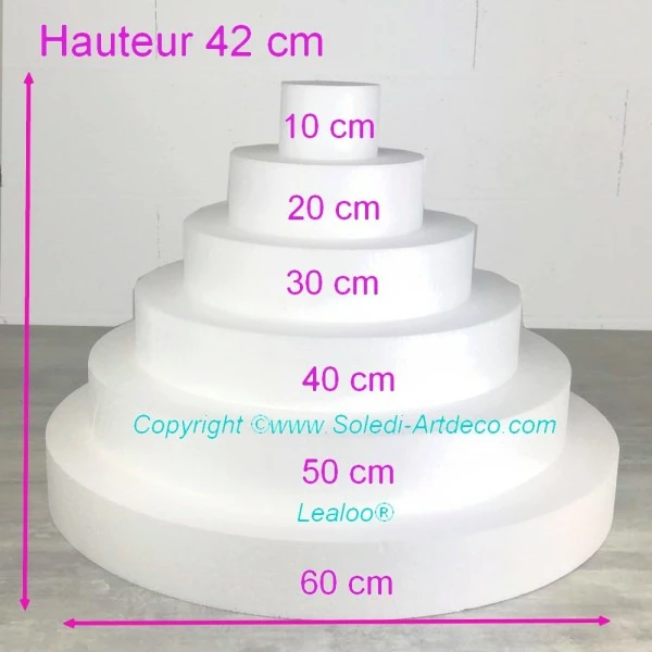 Description de Pièce montée XXL en polystyrène haute densité, hauteur 42 cm, base 60 cm, 6 étages