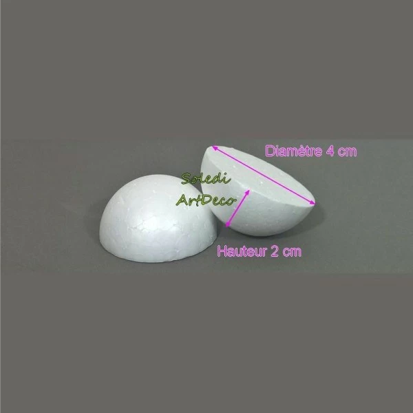 Description de Lot 10 petites demi Boules polystyrène diamètre 4cm/40mm, Dôme plein en Styro bl