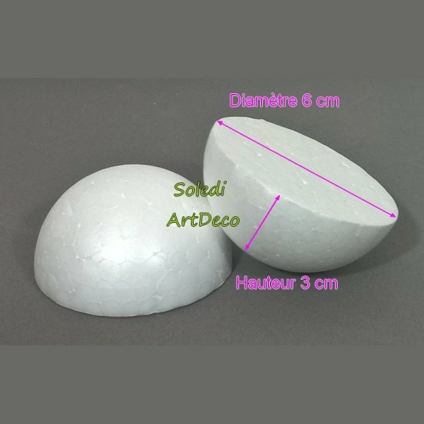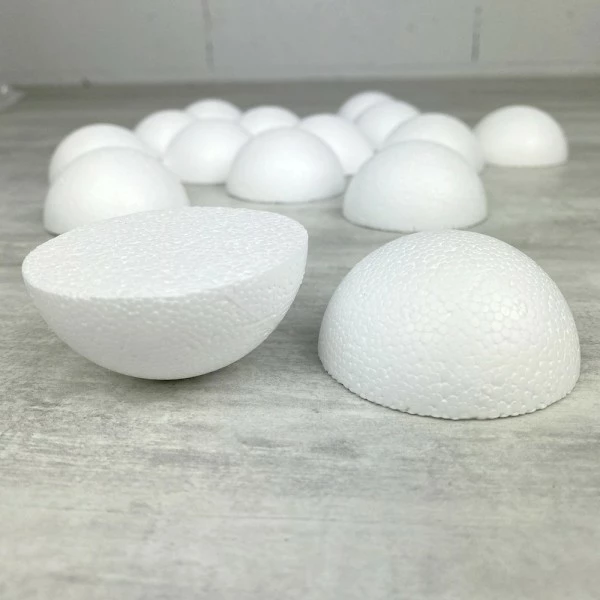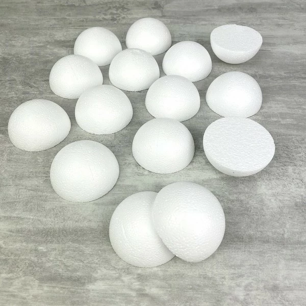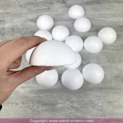 Description de Lot 15 demi Boules polystyrène diamètre 6 cm, Dômes pleins en Styro blanc