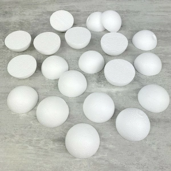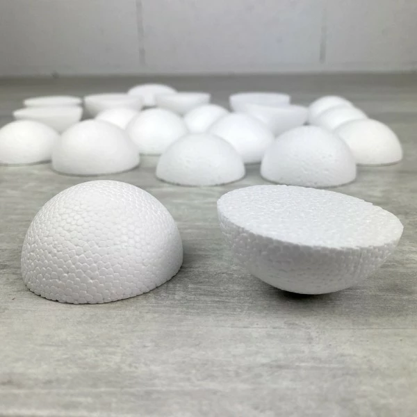Description de Lot 20 petites demi Boules polystyrène diamètre 5cm, Dômes pleins en Styro blanc