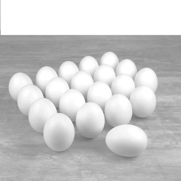 Description de Lot de 20 Oeufs 10 cm de haut, Diamètre 8 cm, en polystyrène blanc plein, densité supérieure