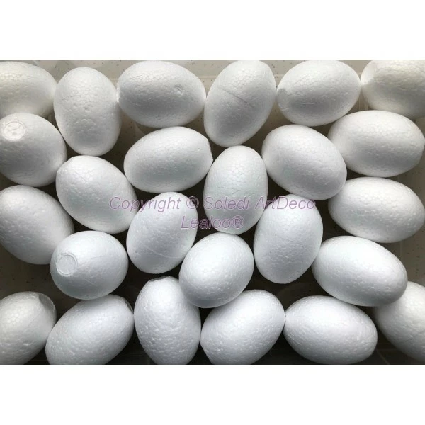 Description de Lot de 25 petits oeufs en polystyrène plein, hauteur 4,5 cm, diamètre 32mm