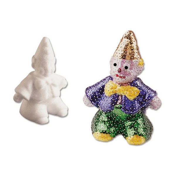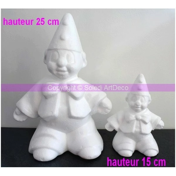 Description de Arlequin clown, 25 cm de haut, en polystyrène blanc