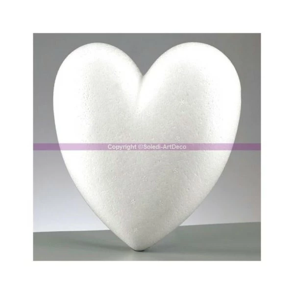 Description de Coeur bombé en polystyrène, Largeur 15 cm, Épaisseur 3 cm, Fond plat