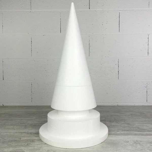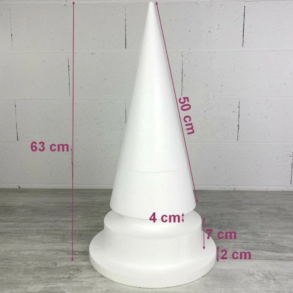 Description de Cône en polystyrène à pied, h. 63 cm avec supports, base 30 cm, à décorer