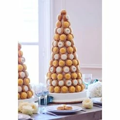 Ces cônes sur socle en polystyrène d’une hauteur de 40 cm ont la forme idéale pour servir de supports dans la confection des pièces montées de macarons. Il sont fournis avec une base ronde en polystyrène diamètre 25 cm épaisseur 5 cm. Cette base permet le montage des macarons et surélève la pièce montée de 5 cm. Elle est très pratique pour déplacer l’ensemble terminé. Hauteur totale45 cm