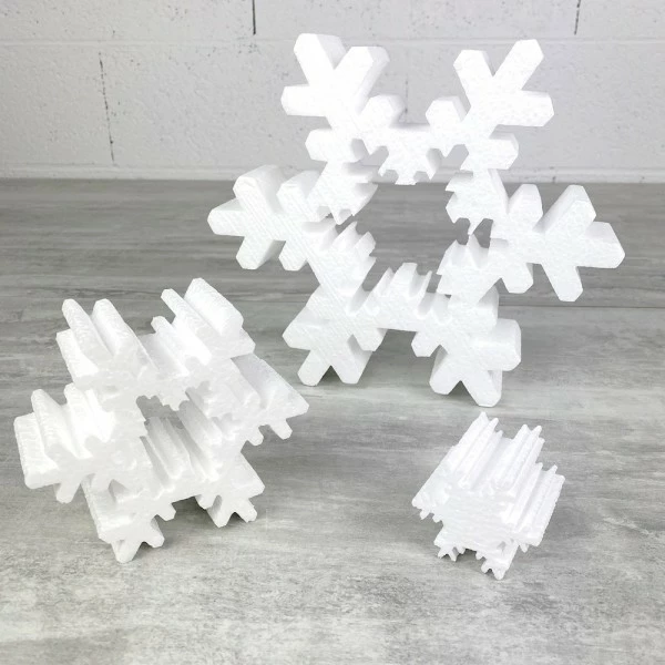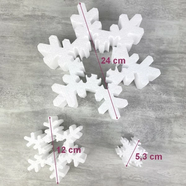 Description de Flocon de neige en polystyrène blanc, 24 cm de diamètre, 3 parties à assembler et décorer