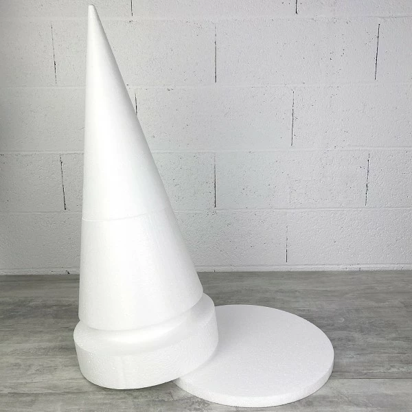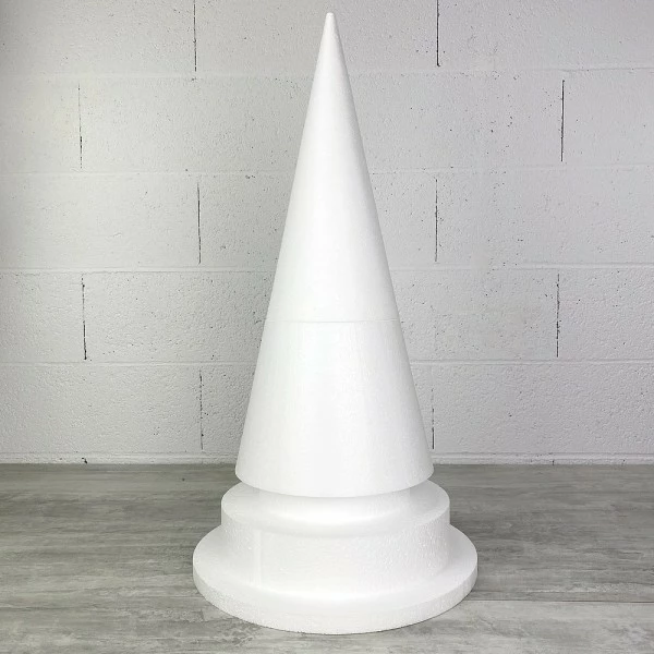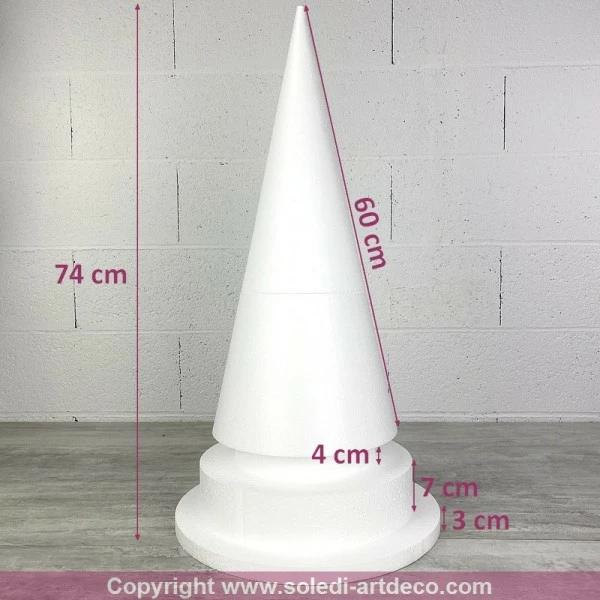 Description de Grand Cône en polystyrène à pied, h. 74 cm avec supports, base 37,5 cm, à décorer